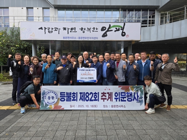 홍명기 용문면장은 “어려운 시국에도 매년 변함없이 어려운 이웃을 위해 기부를 이어가시는 등블회의 헌신과 나눔 정신이 매우 존경스럽다”며 “이번에 용문면에 기부해 주신 성금은 쌀쌀해진 날씨 속 어려운 주민분들에게 따뜻한 위로와 큰 힘이 될 것”이라고 전했다.