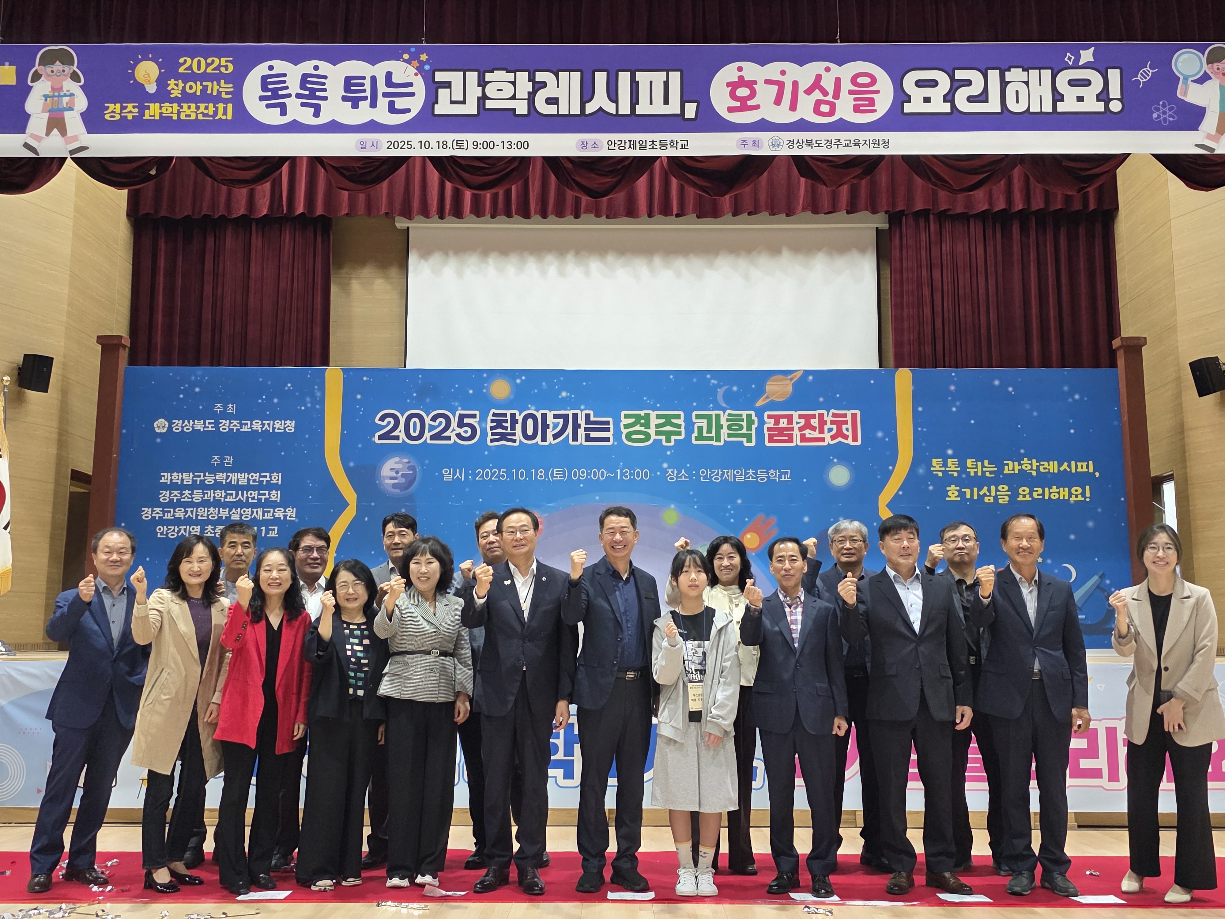 경상북도경주교육지원청(교육장 황영애)은 10월 18일(토) 안강제일초등학교에서 학생과 학부모, 지역주민 등 1000여명이 참석한 가운데 ‘톡톡 튀는 과학레시피, 호기심을 요리하다’라는 주제로‘2025 찾아가는 경주과학꿈잔치’를 개최하였다.