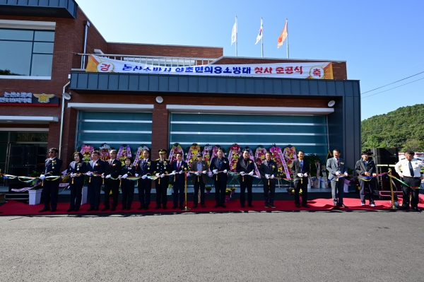 백성현 논산시장은 축사를 통해 “의용소방대는 국가의 손길이 닿기 어려운 곳에서 시민의 생명과 재산을 지키는 현장에 가장 가까운 영웅들”이라며 “새 청사가 대원들의 구심점이 되어 더 안전한 논산을 만드는 데 큰 힘이 되길 바란다”고 전했다.