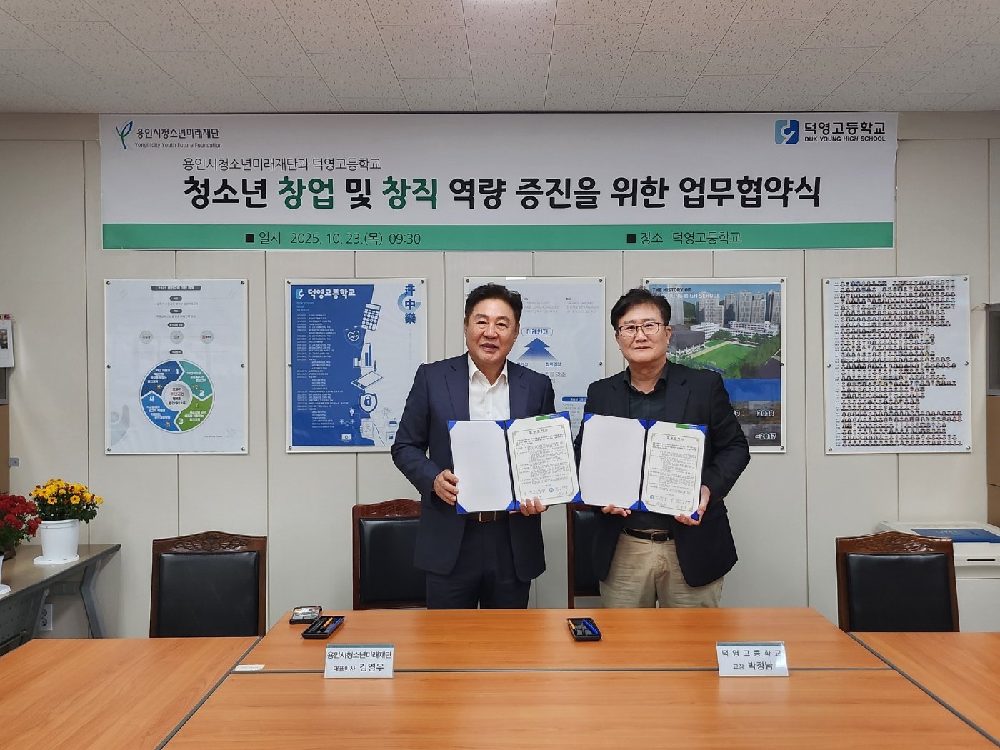 [금요저널] (재)용인시청소년미래재단(이사장 이상일)은 지난 23일 덕영고등학교와 청소년의 창업 및 창직 역량 증진을 위한 업무협약(MOU)을 체결했다.