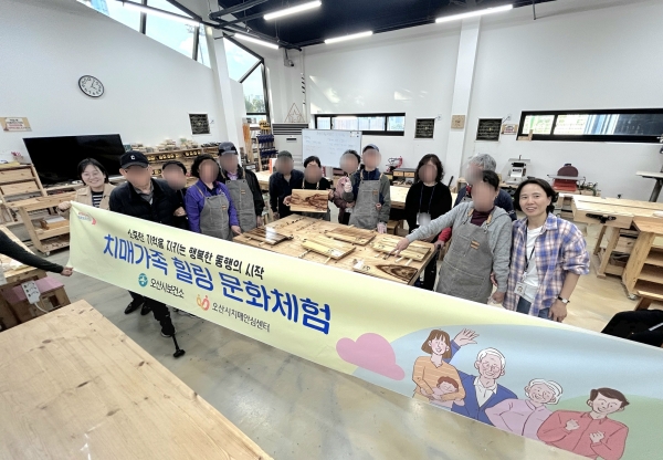 이번 프로그램은 치매환자와 가족의 정서적 회복과 스트레스 완화, 가족 간 유대 강화를 위해 마련된 행사로 참가자들은 맑음터공원 내 에코리움 전망대와 야외 생태체험관을 관람한 뒤, 온마을 목공체험장에서 원목 캄포도마 만들기 등 다양한 체험활동을 즐기며 힐링의 시간을 가졌다.