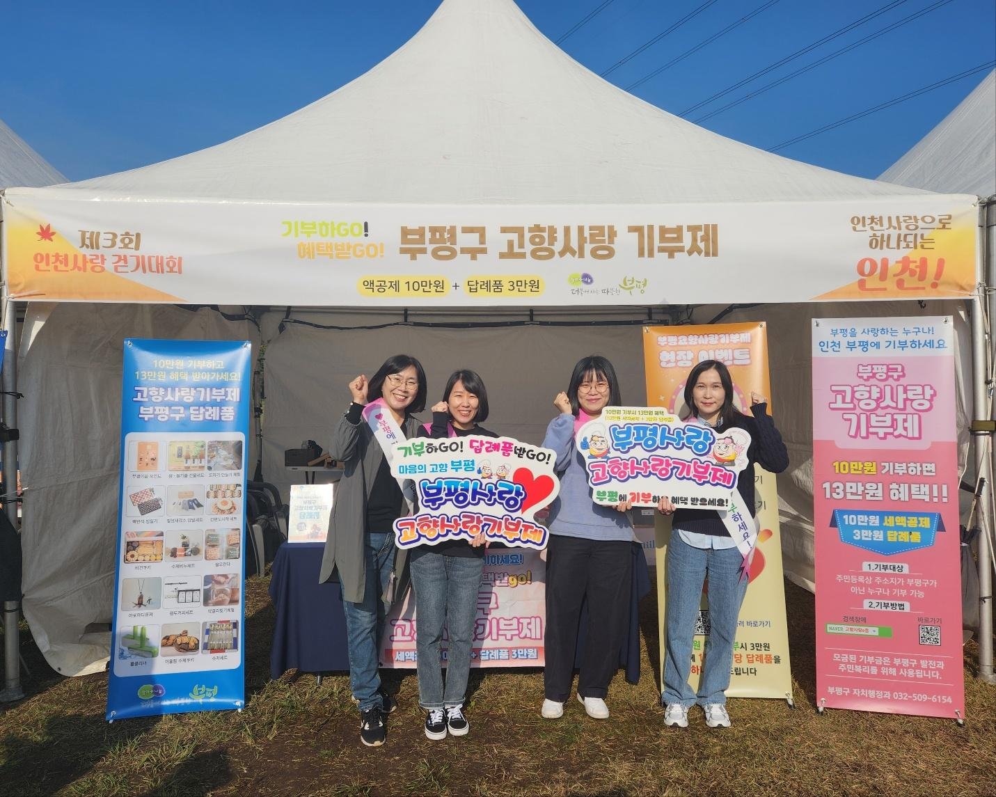 [금요저널] 부평구(구청장 차준택)는 지난 25일 인천대공원에서 진행된 ‘제3회 인천 사랑 걷기대회’에서 고향사랑기부제 홍보 부스를 운영했다고 27일 밝혔다.