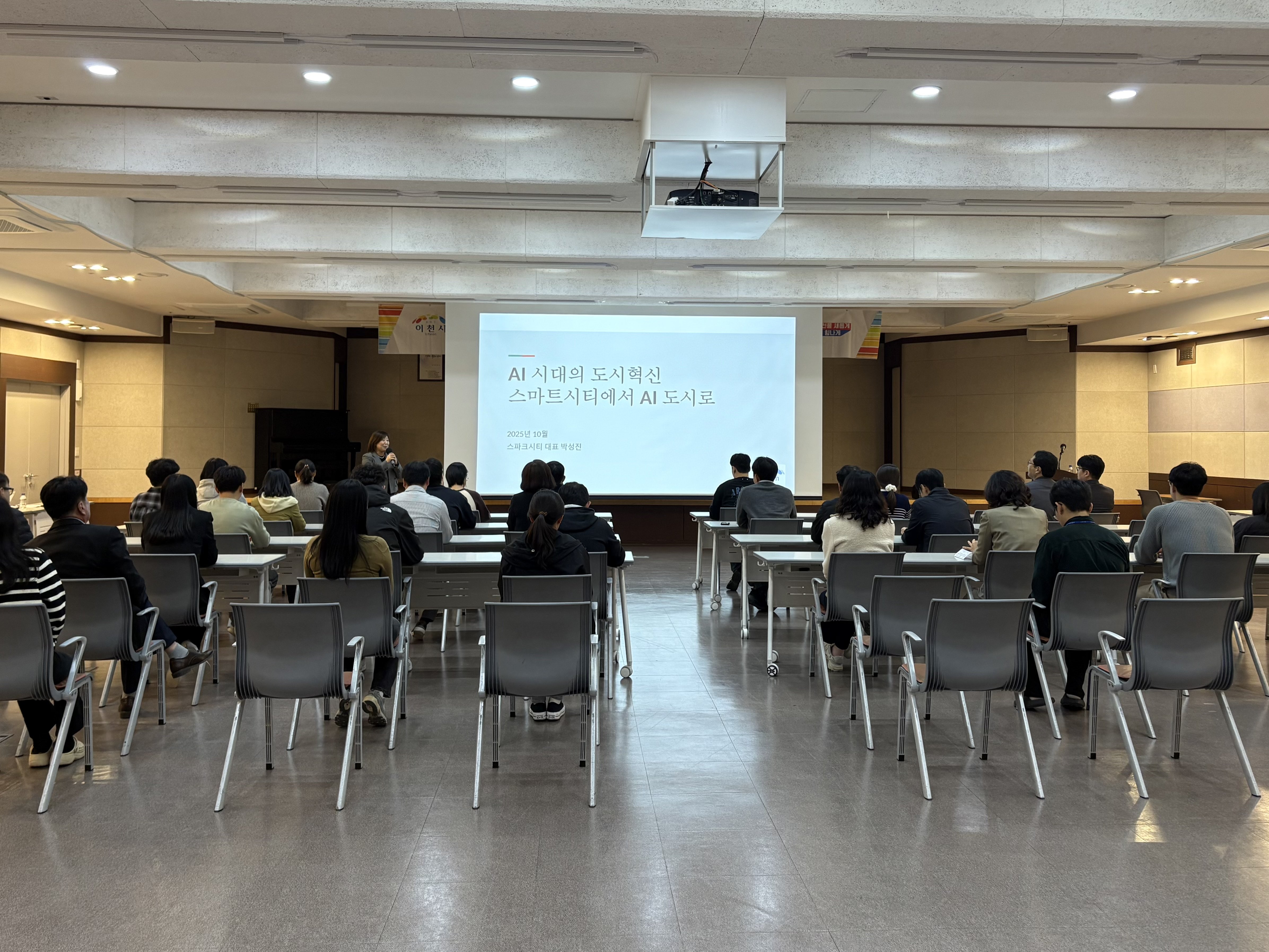 이번 교육은 박성진 강사가 ‘인공지능(AI) 시대의 도시혁신, 스마트시티에서 인공지능(AI) 도시로’라는 주제로 ▲스마트시티의 탄생과 발전 ▲도시혁신 패러다임으로서 AI 원리의 이해 ▲도시에서 인공지능(AI) 활용분야와 사례 ▲인공지능(AI) 기반 도시 전환을 위한 발전 방향과 과제 등의 내용으로 교육을 진행했다.