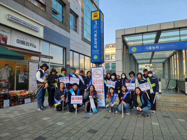 [금요저널] 시흥시는 지난 10월 28일 시흥능곡역 및 능곡 상가지구 일대에서 흡연 민원 다발지역 합동점검 및 금연 캠페인을 전개했다.
