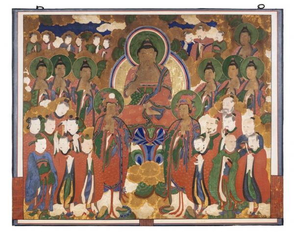 ‘수원 봉녕사 석가여래회도’는 석가여래의 설법 장면을 그린 불화다.