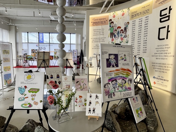 전시 공간에는 작가들이 직접 그린 웹툰 원화, 캐릭터 시안, 팬 상품 등 50여 점의 작품이 전시되어 장애인의 창의력과 예술적 역량을 한눈에 볼 수 있는 기회가 됐다.