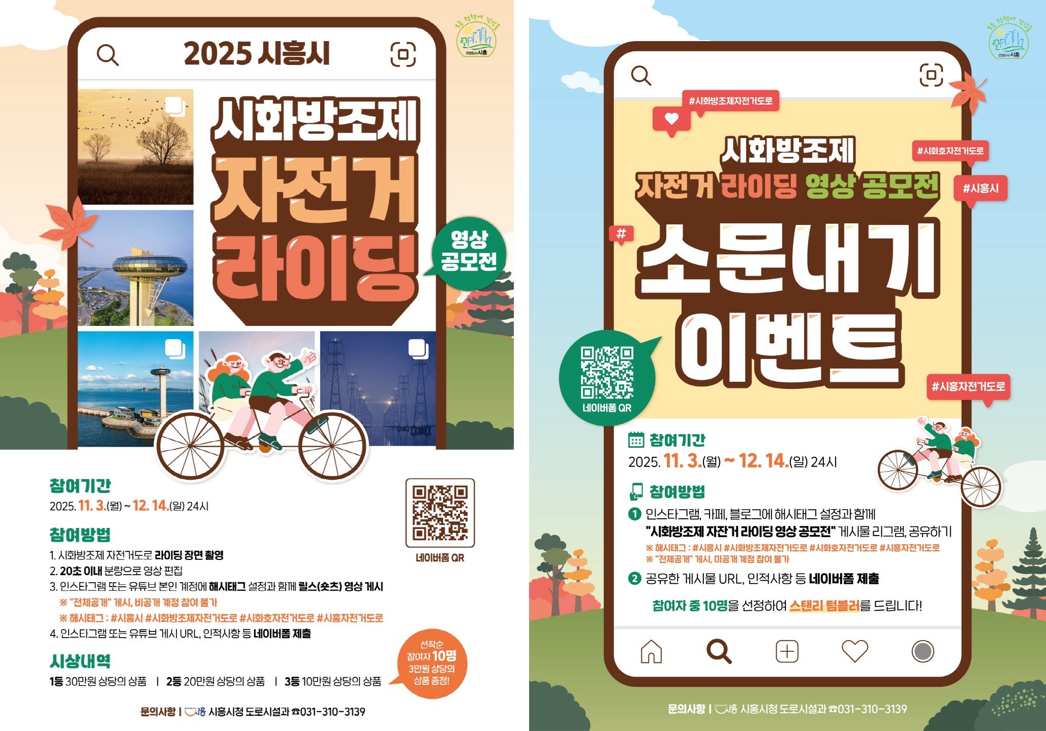 시화방조제 자전거 라이딩 영상 공모전 포스터(왼쪽)와 시화방조제 자전거 라이딩 영상 공모전 소문내기 포스터 (시흥시 제공)