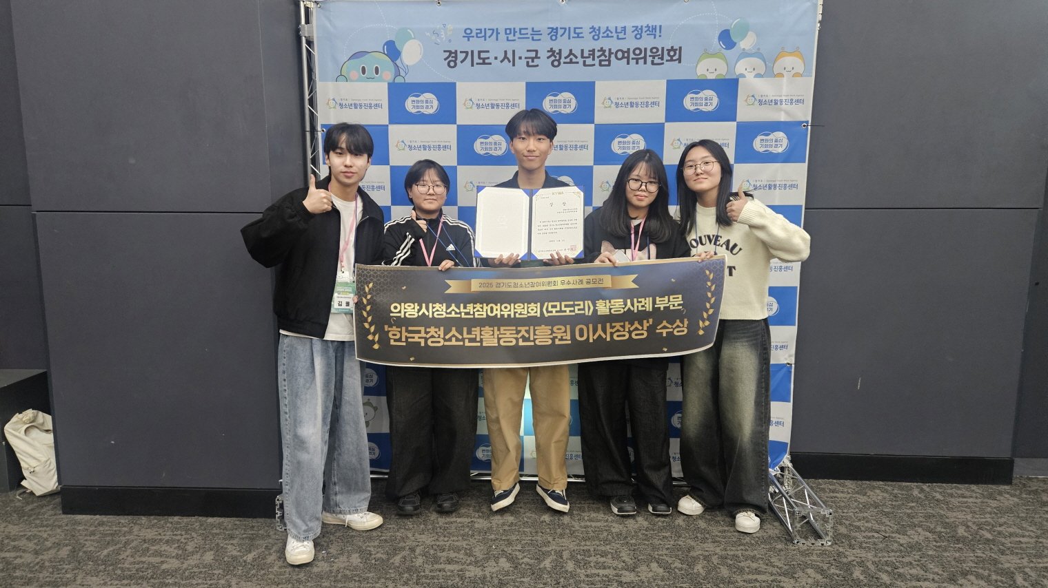[금요저널] 의왕시청소년재단은 의왕시청소년수련관 의왕시청소년참여위원회가 경기도 청소년참여위원회 우수사례 공모전 ‘활동사례’부문에서“한국청소년활동진흥원 이사장상”을 수상하며 2년 연속 수상의 성과를 달성했다고 밝혔다.