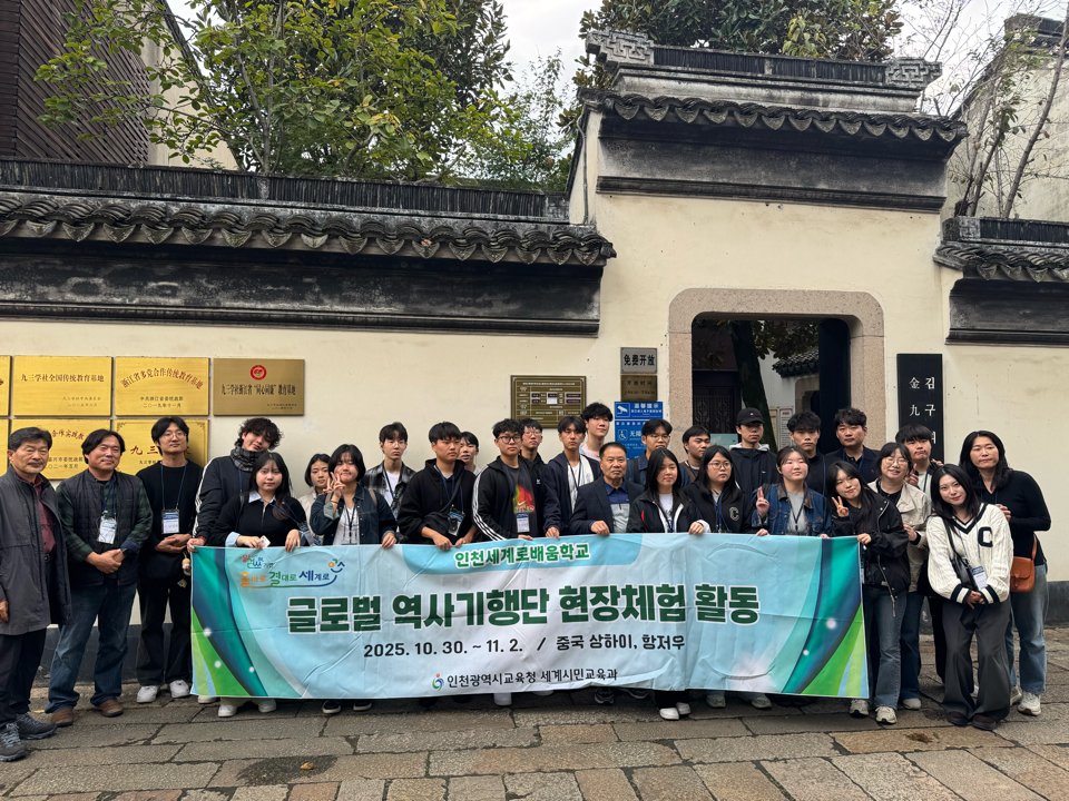 [금요저널] 인천광역시교육청(교육감 도성훈)은 인천세계로배움학교 ‘2025 글로벌 역사기행단’이 10월 30일부터 11월 2일까지 3박 4일간 중국 상하이와 항저우에서 현장체험 활동을 마쳤다고 밝혔다.