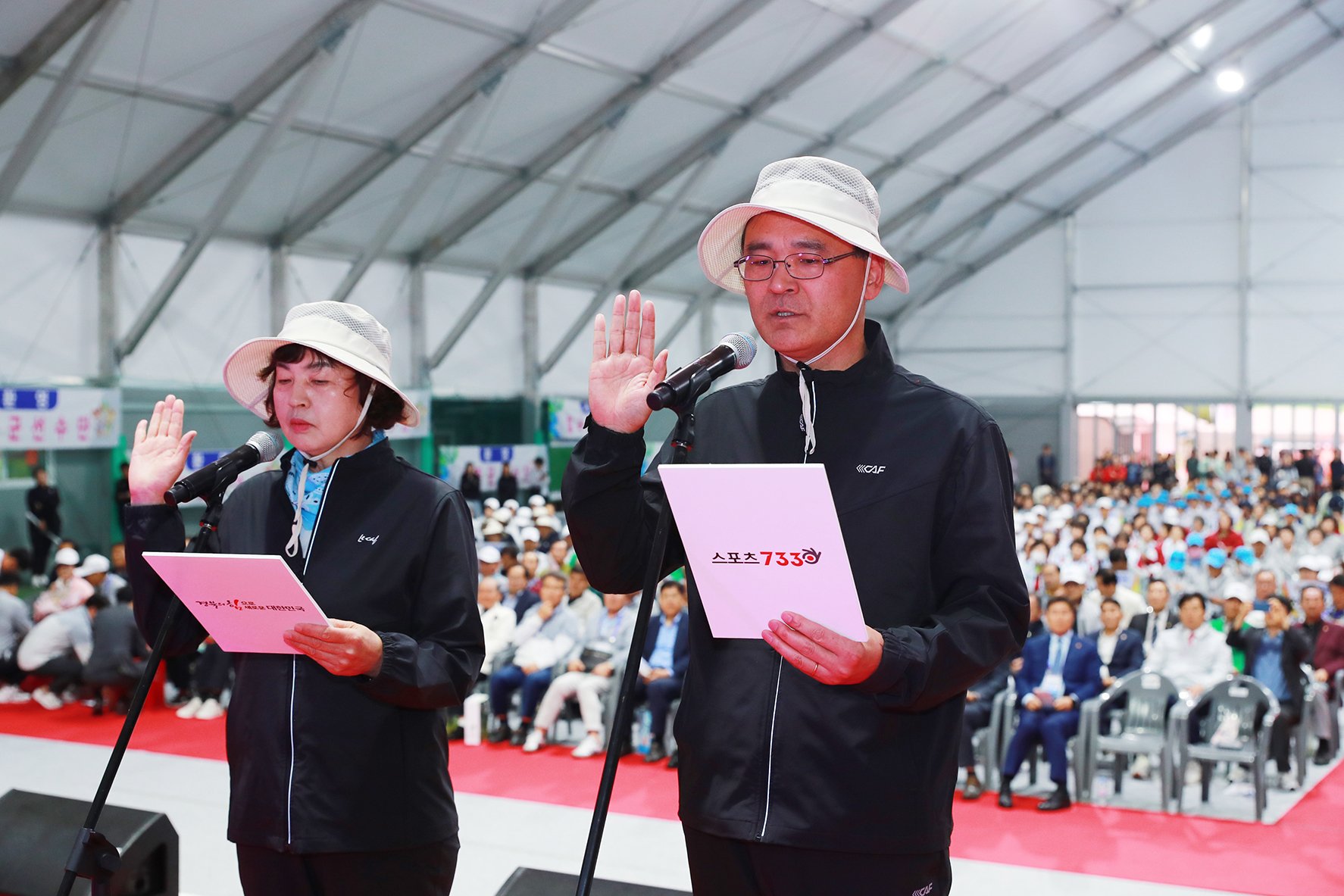지난해 열린 2024 경북어르신생활체육대회에서 선수단 대표 선서를 하고 있다.3 (울진군 제공)