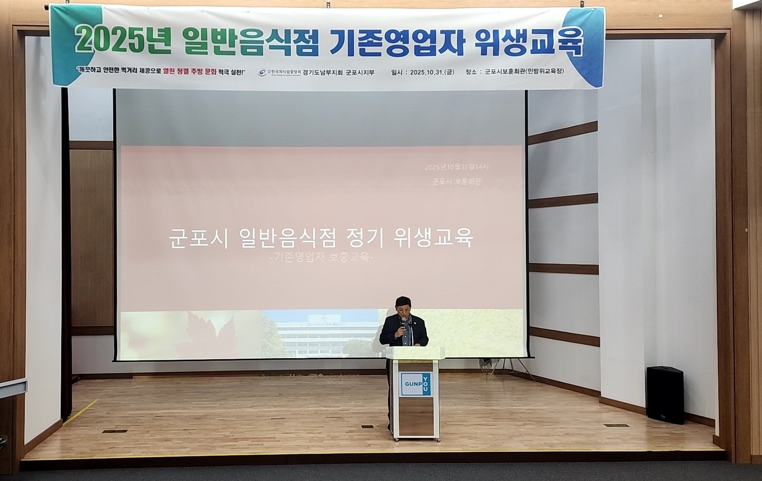 [금요저널] 군포시가 지난 10월 31일 군포시보훈회관에서 관내 일반음식점 영업주 100여명을 대상으로 위생교육을 실시했다.