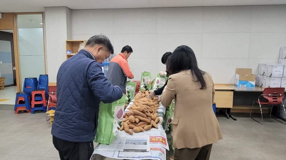 수확된 고구마는 5~6kg씩 포장돼 저소득 가정 40세대에 전달될 예정이다.