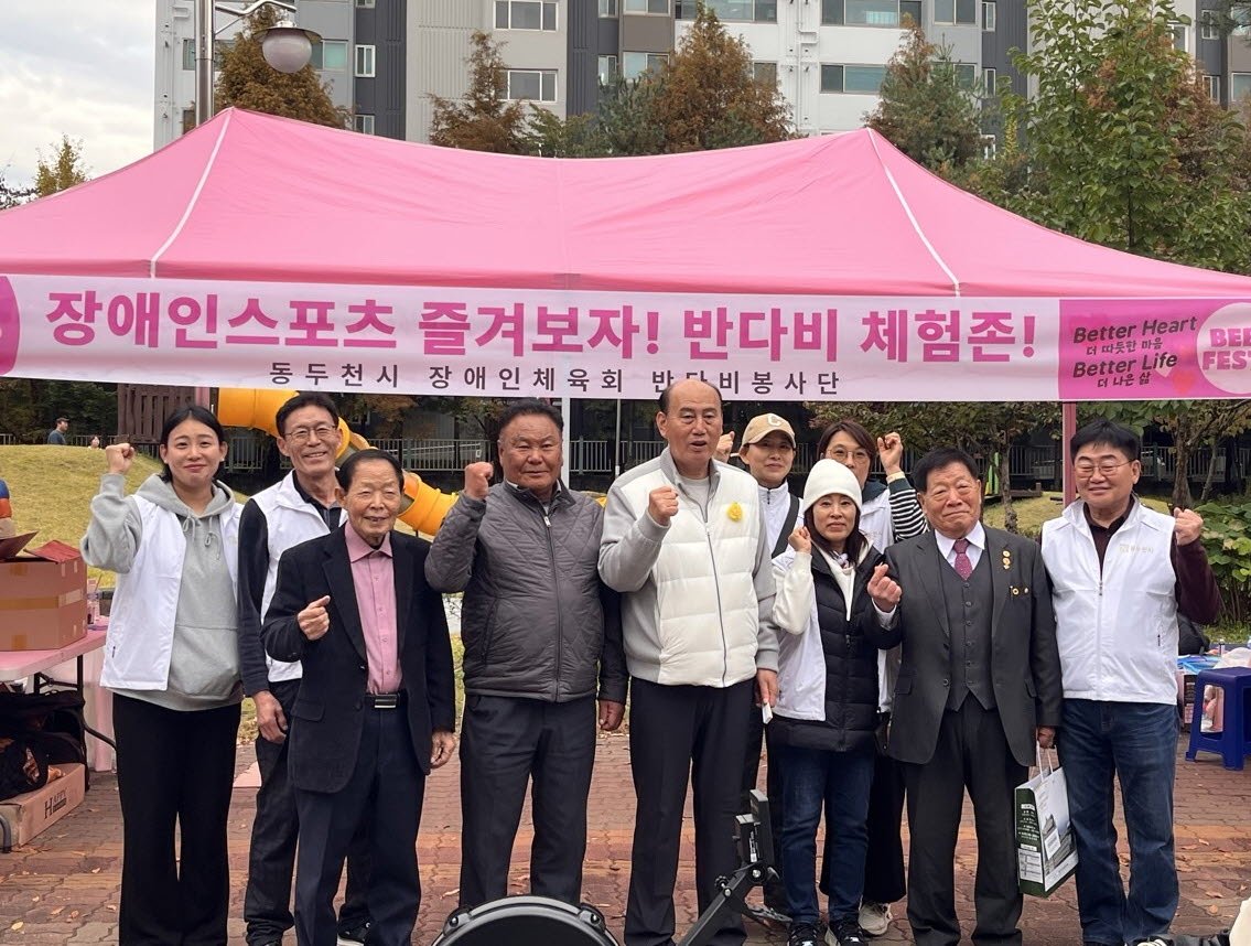 [금요저널] 동두천시 장애인체육회와 반다비봉사단은 지난 1일 시민평화근린공원에서 열린‘제18회 동두천시 자원봉사축제’에 참여해 장애인 친화 스포츠 체험부스를 운영했다고 밝혔다.