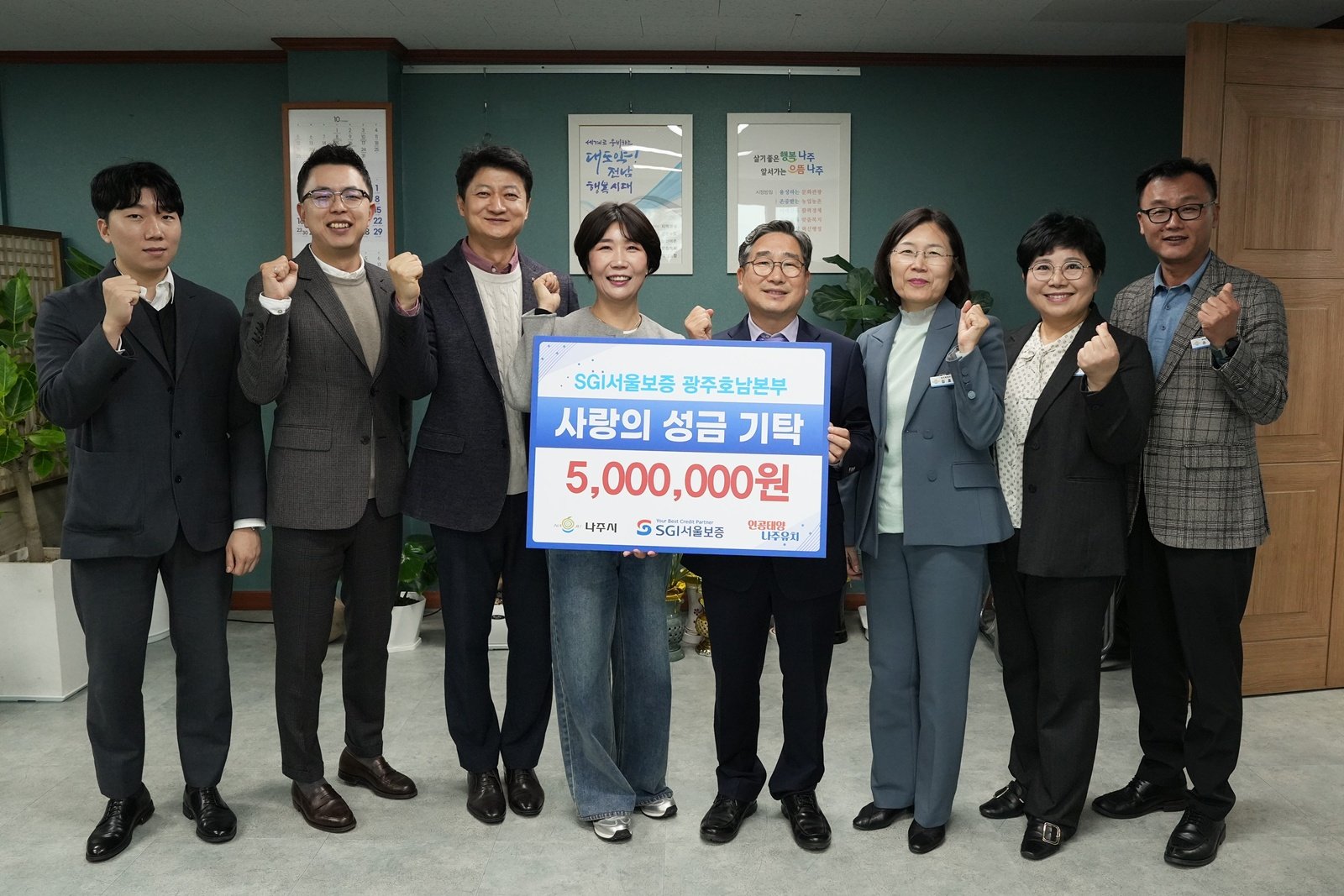 나주시는 SGI서울보증 광주호남본부가 아동복지시설 ‘백민원’에 성금 500만원을 기탁했다고 4일 밝혔다.