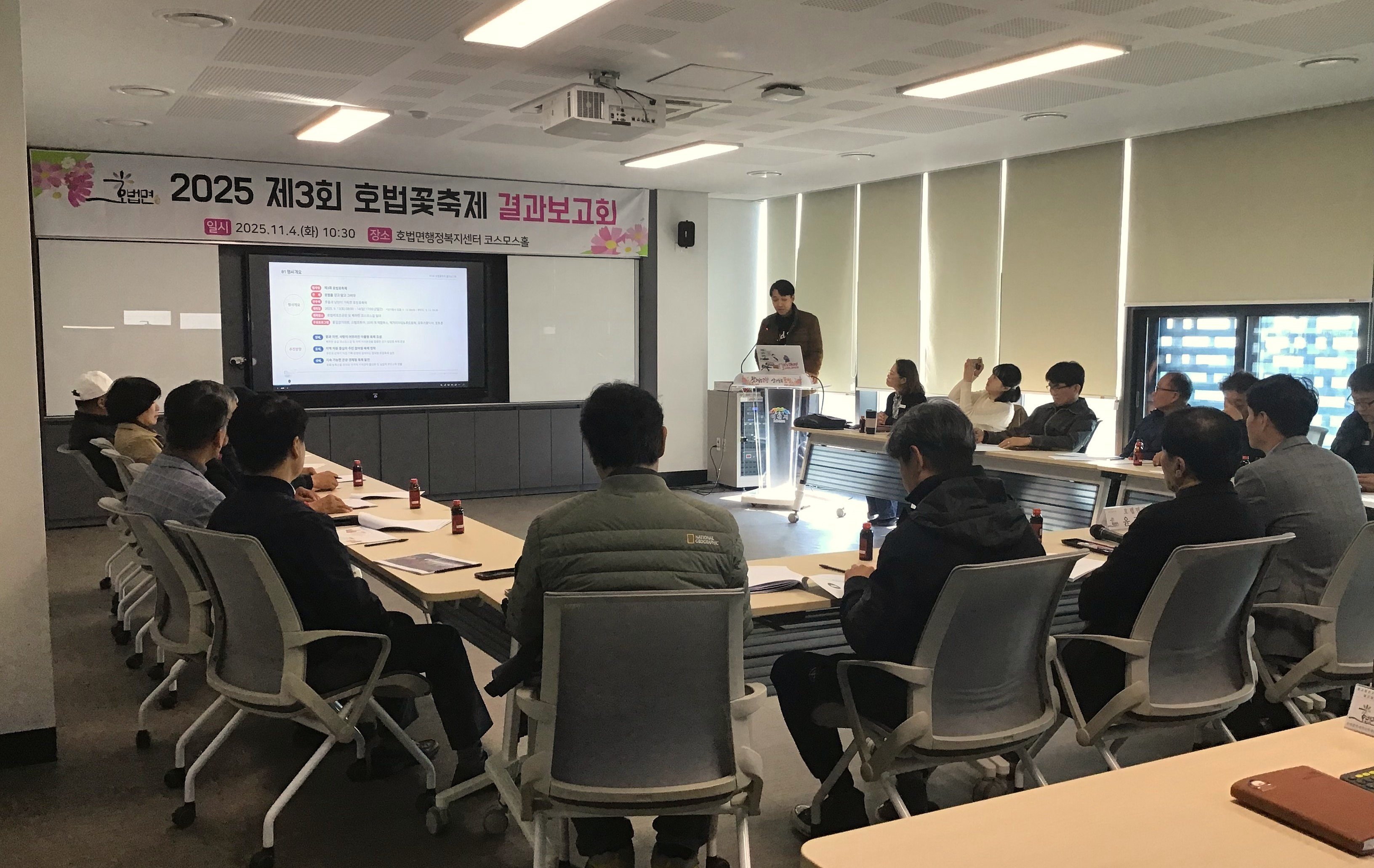 [금요저널] 이천시 호법면과 호법꽃축제 추진위원회는 11월 4일 호법면 행정복지센터 코스모스홀에서 ‘제3회 호법꽃축제 결과보고회’를 개최하고 축제 운영 성과와 향후 개선 운영 방향을 논의했다고 밝혔다.