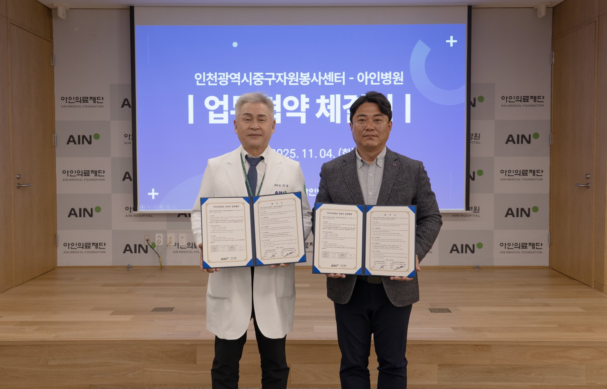 [금요저널] 인천중구자원봉사센터는 지난 4일 의료법인 아인의료재단 아인병원과 ‘자원봉사자의 건강 증진 및 지역사회 발전을 위한 업무협약’을 체결했다고 밝혔다.
