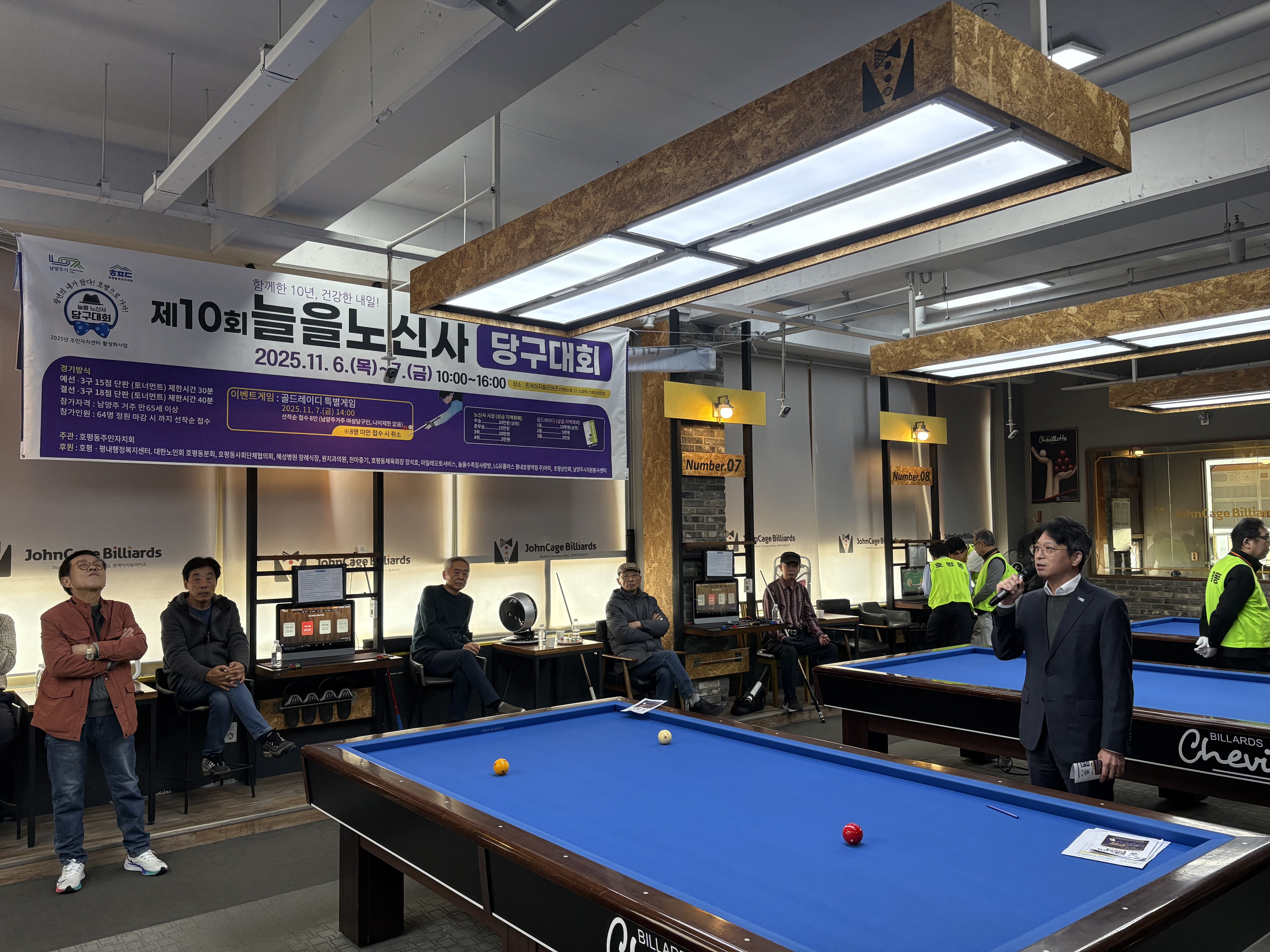 올해로 10번째 진행되는 ‘늘을 노신사 당구대회’는 시에 거주하는 만 65세 이상 어르신들이 생활체육을 통해 건강을 증진하고 삶의 질을 높일 수 있도록 호평동 주민자치회에서 마련했다.