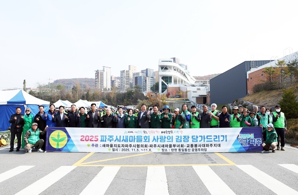 [금요저널] 파주시새마을회는 지난 6일 탄현 통일동산 주차장에서 이웃사랑 실천을 위한 ‘사랑의 김장 담그기’행사를 성황리에 개최했다고 밝혔다.