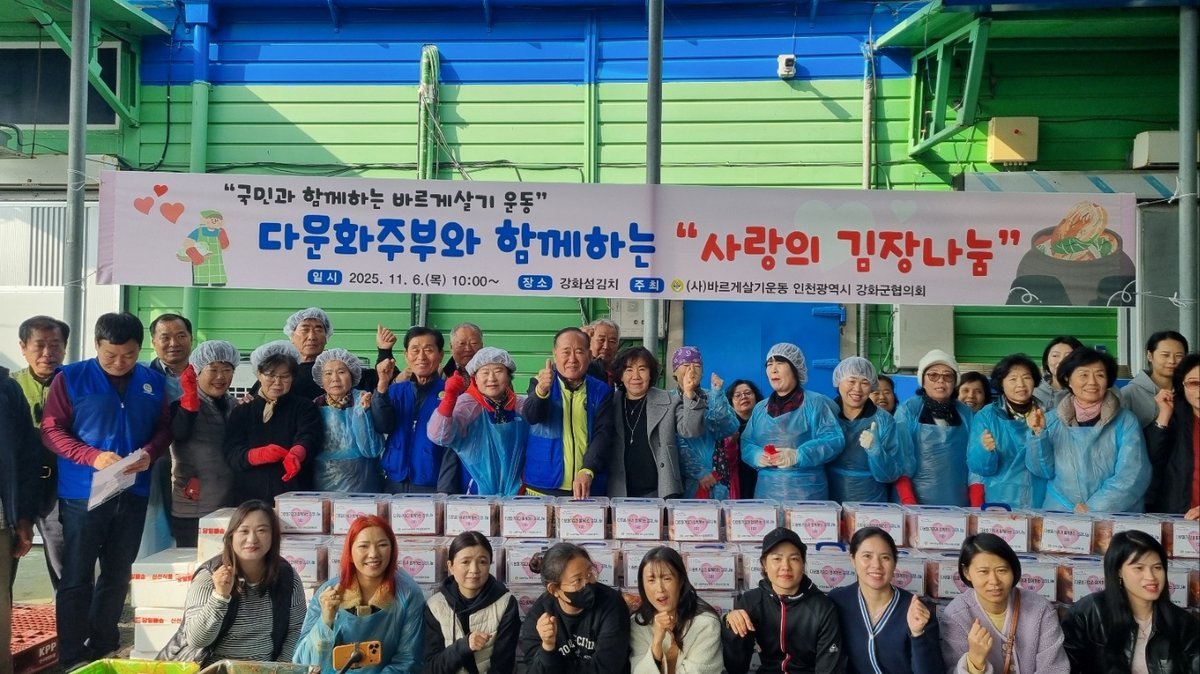 [금요저널] 강화군은 바르게살기운동 강화군협의회에서 지난 6일 다문화 주부와 함께하는 사랑의 김장 나눔 행사를 개최했다고 밝혔다.