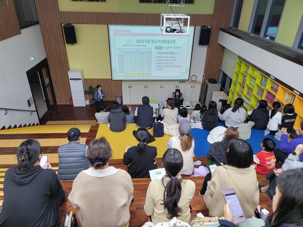 설명회에서는 ‘작은 학교의 큰 배움’을 비전으로 △작은학교 특색교육과정 △결이음교육과정 △영어맞춤교육 △골프인증학교 등 강화교육의 대표 프로그램이 소개됐으며 학부모들이 강화교육을 직접 경험할 수 있는 다양한 참여 방법도 안내됐다.