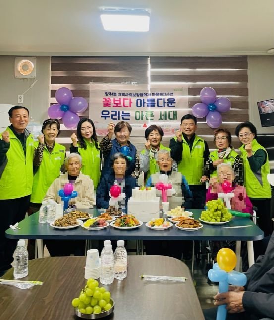 ‘꽃보다 아름다운 우리는 아흔 세대’사업은 2025년 양주1동 지역사회보장협의체 마을복지사업의 일환으로 지역사회보장협의체 위원들이 90세이상 어르신들을 모시고 위원들이 손수 만드신 소불고기, 잡채, 케이크 등 잔치 음식을 경로당 어르신들과 나누며 어르신들의 장수와 건강을 기원하는 사업이다.