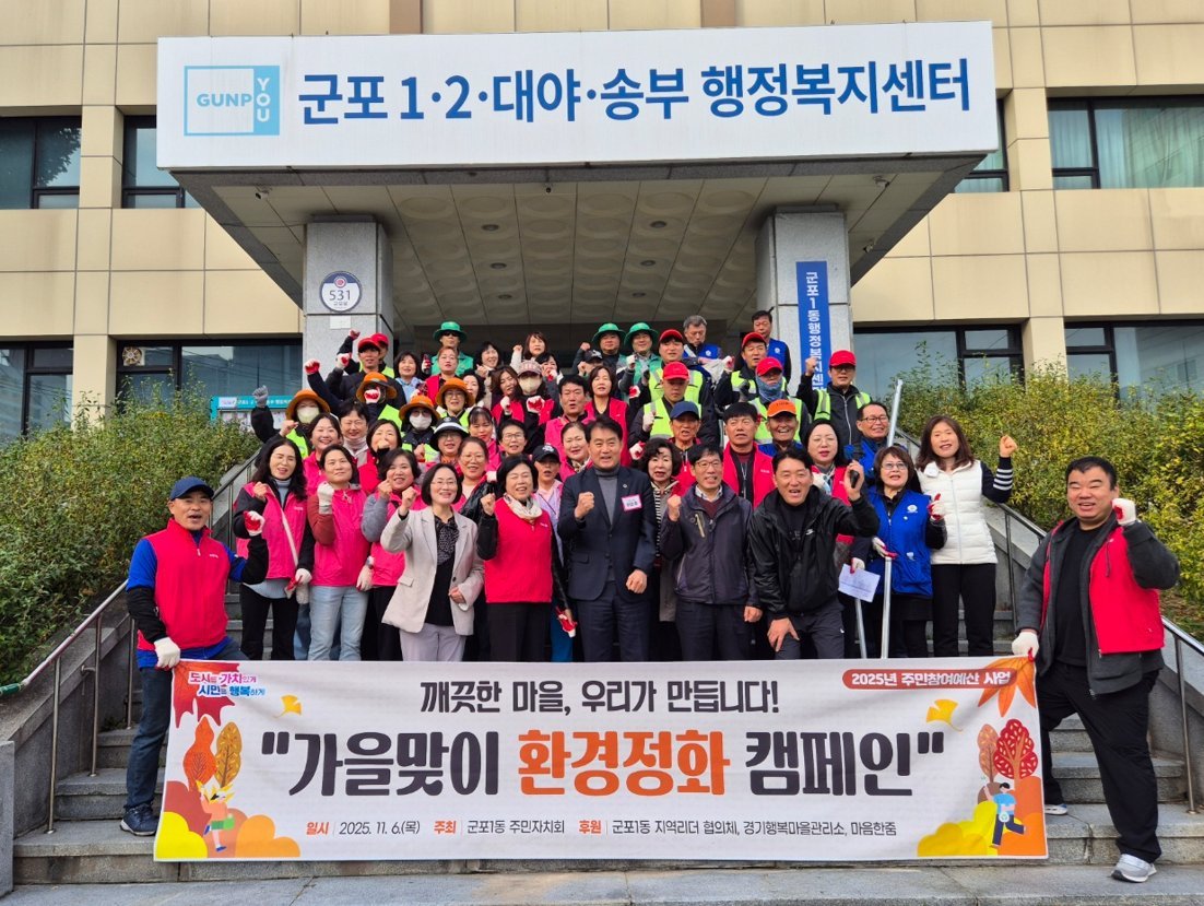 [금요저널] 군포시 군포1동은 지난 6일 쾌적한 생활환경 조성을 위한 가을철 대청소와 환경정화 캠페인을 실시했다.