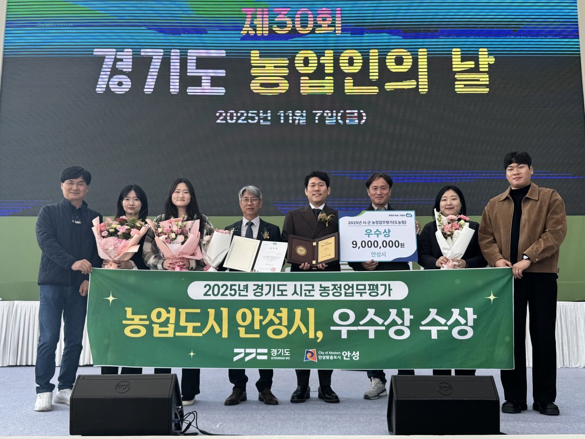 [금요저널] 안성시가 2025년 경기도 시·군 농정업무 평가에서 우수 기관으로 선정되어 ‘우수상’을 수상했다.