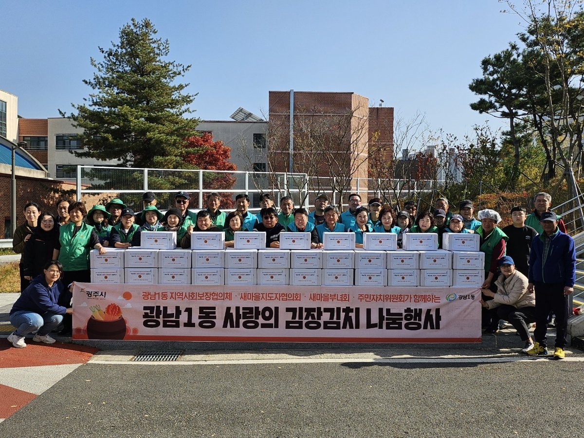 [금요저널] 광주시 광남1동은 지난 9일 광남1동 행정복지센터에서 ‘사랑의 김장담그기 행사’를 열고 지역의 어려운 이웃들을 위한 따뜻한 나눔을 실천했다.