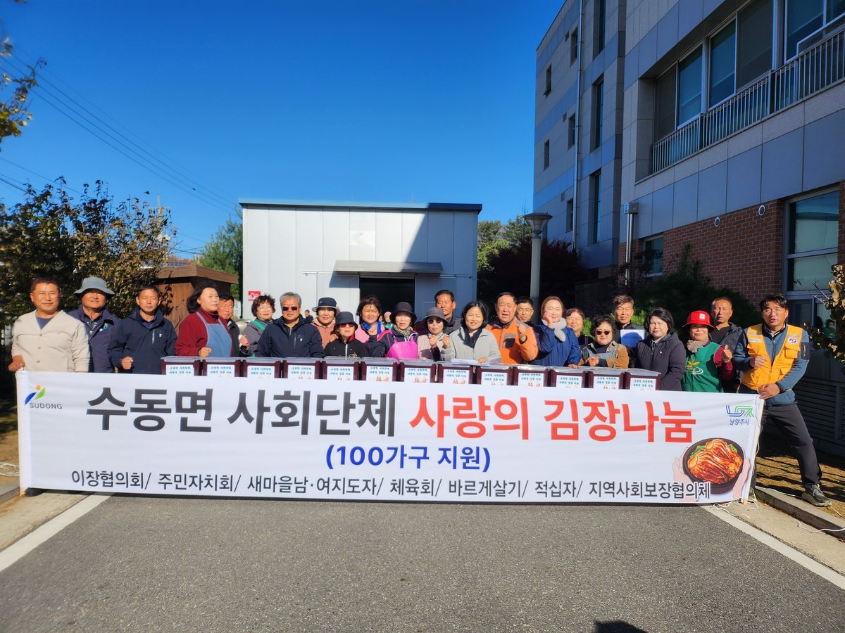 이날 마련된 김치 100통은 수동면 관내 독거노인, 장애인, 복지사각지대에 놓인 저소득층 가정 등에 전달됐다.