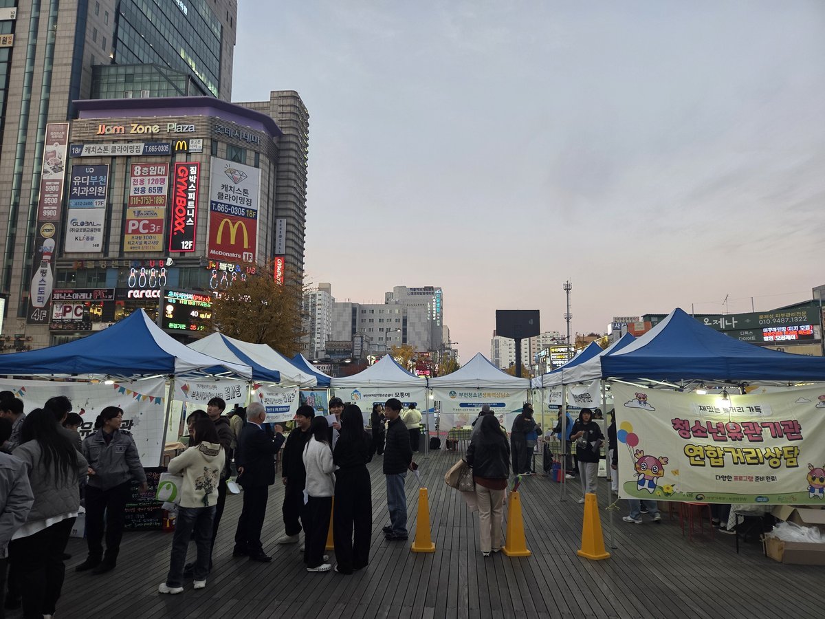 청소년유관기관이 수능 대신 당신을 응원하다 를 주제로 거리 상담을 진행하는 모습 (부천시 제공)
