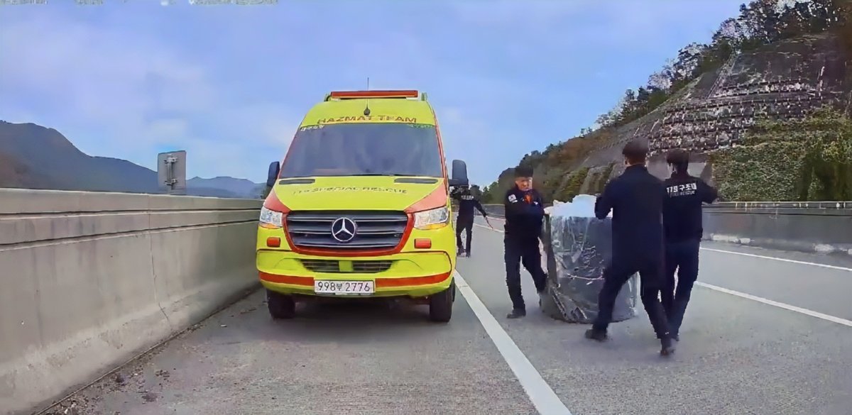 특수대응단 6명, 울산 화력발전소 붕괴현장 지원근무 복귀 중 고속도로에 떨어진 적재물 신속 수습