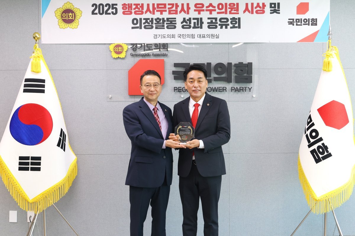 [금요저널] 경기도의회 교육행정위원회 이은주 의원이 18일 경기도의회 국민의힘으로부터 ‘2025 행정사무감사 우수의원상’을 수상했다.