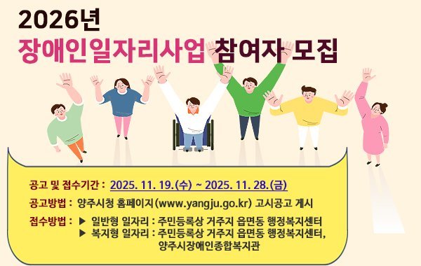 -양주시 2026년 장애인일자리사업 참여자 모집