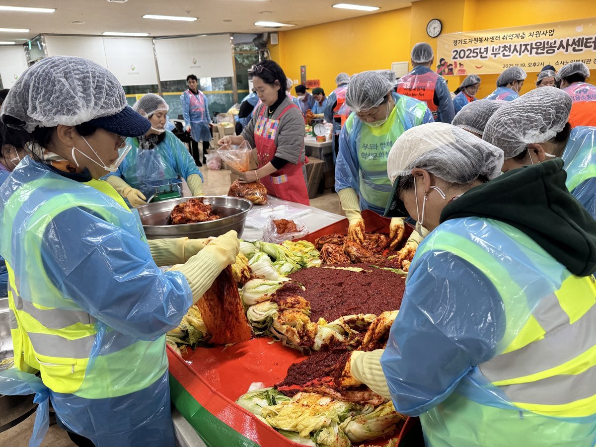 [금요저널] 부천시는 지난 19일 부천시자원봉사센터가 ‘2025 사랑의 김장나눔’행사를 열고 관내 5개의 복지기관을 통해 취약계층 375가구에 겨울철 김장김치를 전달했다고 20일 밝혔다.