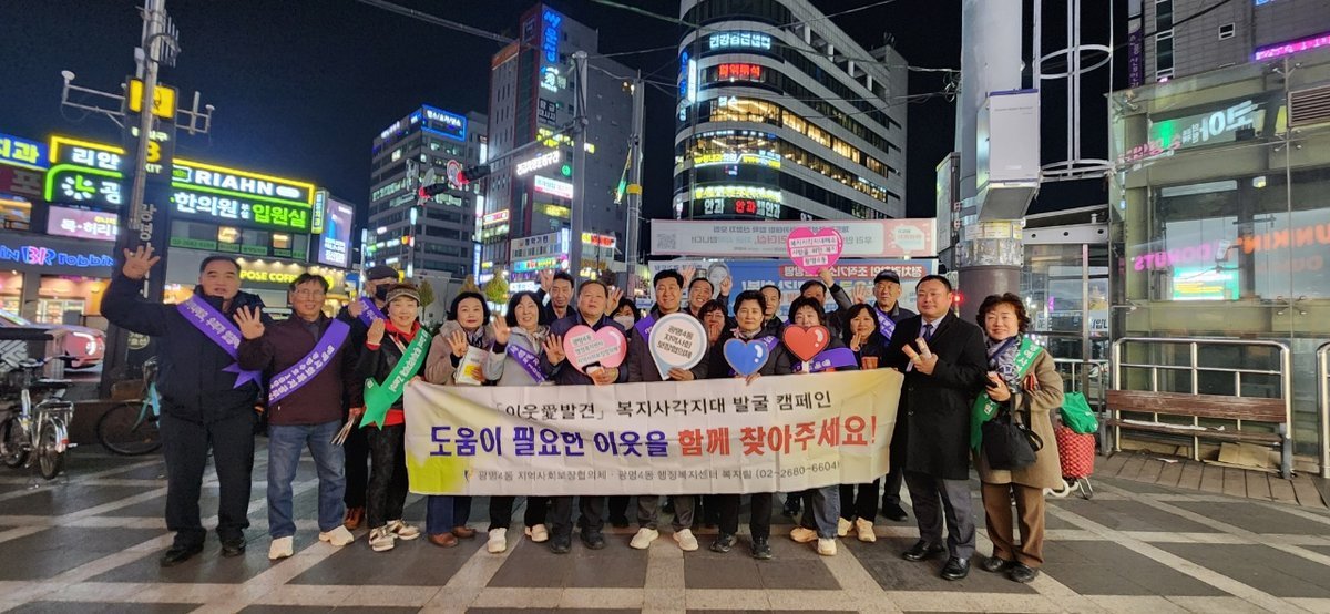 [금요저널] 광명시 광명4동 지역사회보장협의체는 지난 19일 광명사거리역 출구 앞과 광명사거리 일대에서 어려운 이웃을 발굴·지원하기 위한 ‘2025 겨울철 복지 사각지대 발굴 캠페인’을 전개했다.