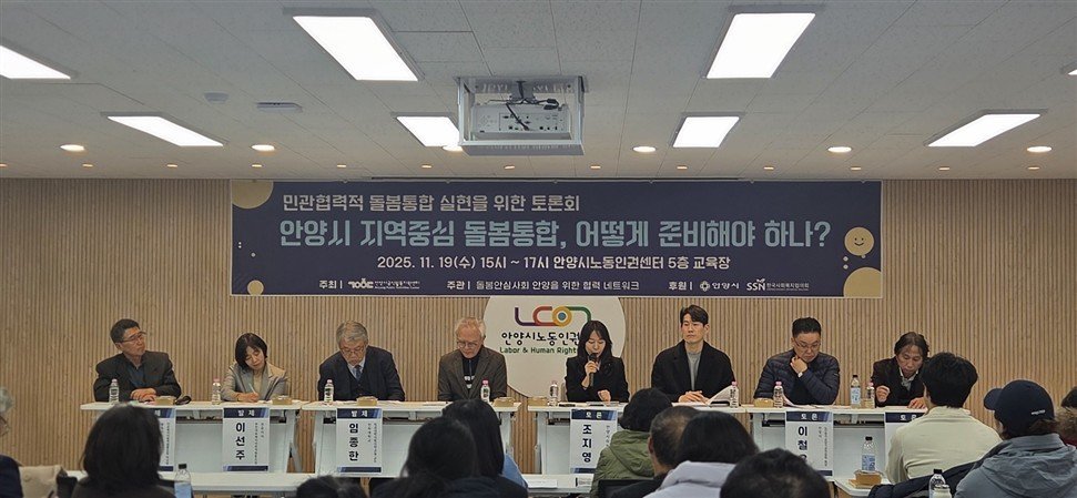 [금요저널] 안양시공익활동지원센터의 공익네트워크 생기발랄 프로젝트에 참여 중인 ‘ 돌봄안심사회 안양을 위한 협력 네트워크 ’는 지난 19 일 안양시노동인권센터 교육장에서 내년 3 월 시행 예정인 ‘ 돌봄통합지원법 ’에 대비해 지역 중심의 대응체계를 모색하는 민관 합동 토론회를 개최했다고 21 일 밝혔다.