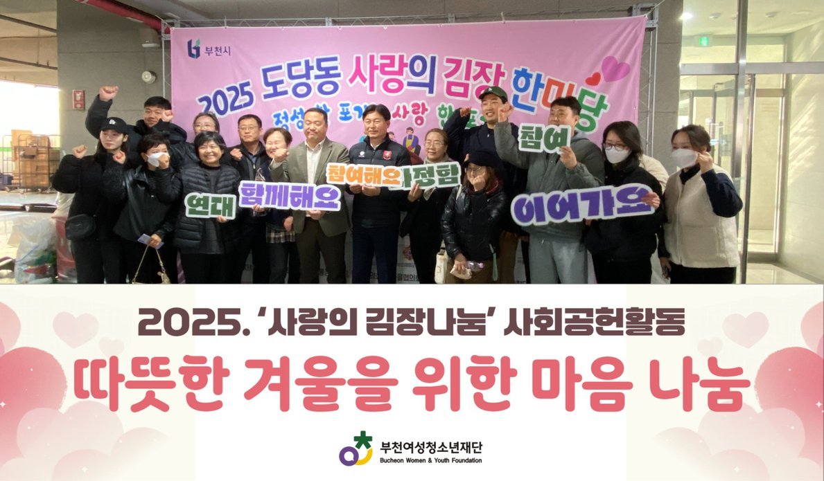 [금요저널] 부천여성청소년재단은 11월 20일 도당어울마당에서 열린 ‘2025. 도당동 사랑의 김장 한마당’에 참여해 지역사회 함께하는 따뜻한 나눔 활동을 펼쳤다.