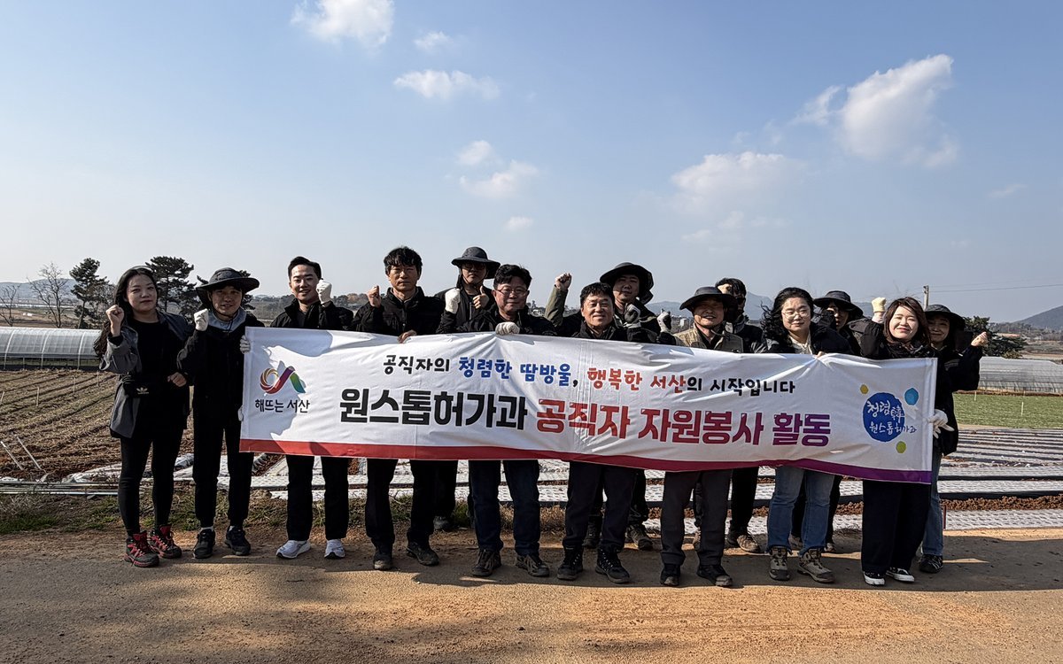 [금요저널] 서산시 원스톱허가과 직원 15명은 지난 20일 일손 부족으로 어려움을 겪고 있는 부석면의 한 농가를 방문해 마늘심기 등 일손돕기를 실시했다.