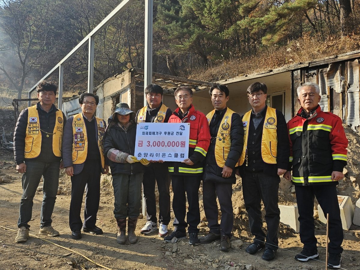 [금요저널] 춘양라이온스클럽은 11월 21일, 최근 갑작스러운 화재로 생활 터전을 잃은 관내 피해 가구를 위로하고 조속한 일상 회복을 돕기 위해 지원금 300만원을 전달했다.