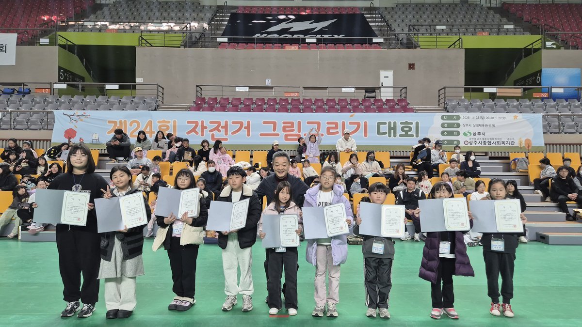 [금요저널] 상주시종합사회복지관은 11월 23일 상주시 실내체육관에서 지역 내 아동을 대상으로 자전거 안전의식을 고취하고 어린이들의 창의력을 뽐낼 수 있도록 ‘제24회 자전거 그림 그리기 대회’를 개최했다.