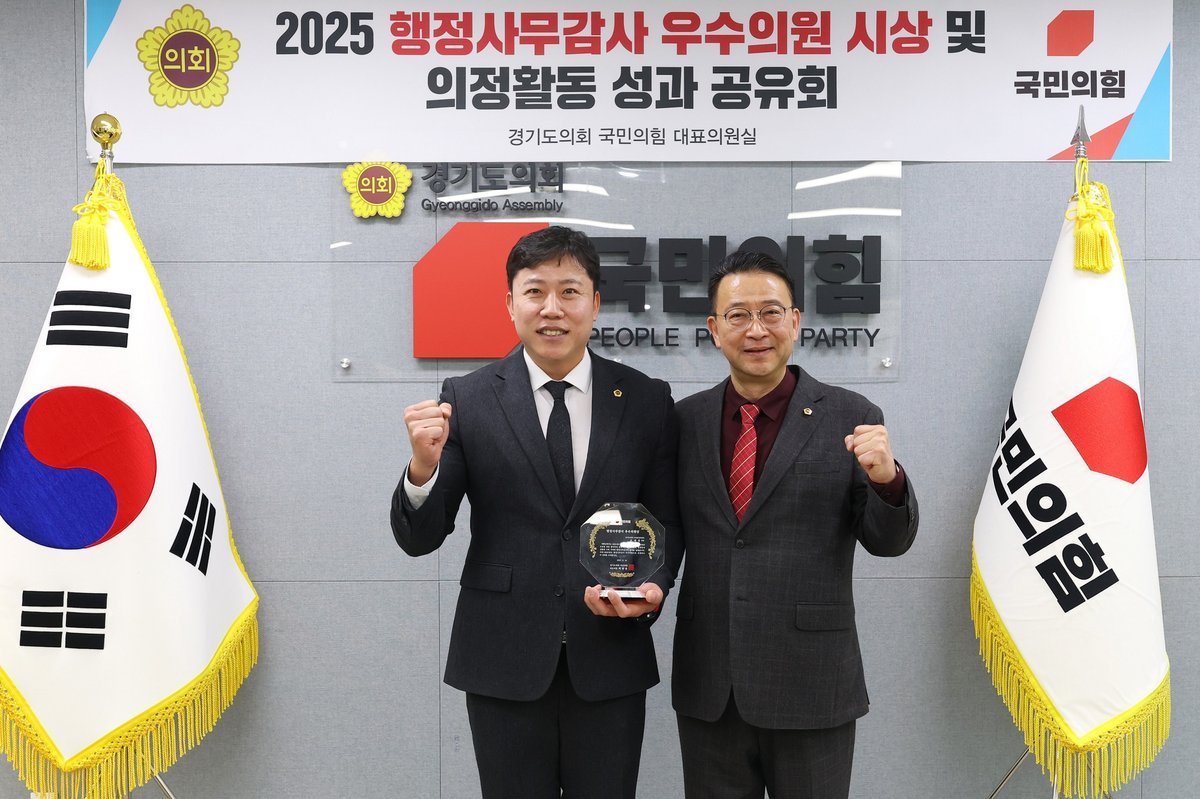 [금요저널] 경기도의회 교육행정위원회 오세풍 의원은 11월 24일, 경기도의회 국민의힘 대표실에서 열린 시상식에서, 2025년 경기도의회 행정사무감사를 통해 교육행정 전반에 대한 구조적 문제를 짚어내고 실효성 있는 개선책을 제시한 공로를 인정받아 ‘2025년 행정사무감사 우수의원’에 선정됐다.