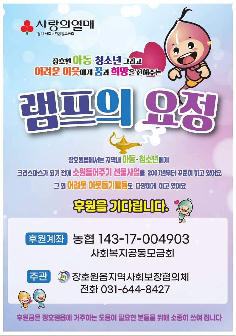 ‘램프의 요정’은 장호원읍에서 2007년부터 지역 내 저소득층 아동·청소년에게 크리스마스를 맞이하여 소원 들어주기 선물사업으로 꾸준히 진행해 온 전통 깊은 지역 복지공동체 역할의 사회복지사업이다.
