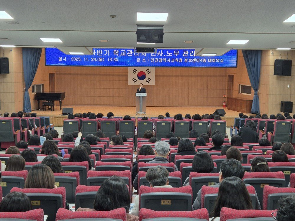 [금요저널] 인천광역시교육청은 24일 정보센터 4층 대회의실에서 공립 각급학교 행정실장 500여 명을 대상으로 ‘2025년도 하반기 학교관리자 인사‧노무 관리 연수’를 실시했다.