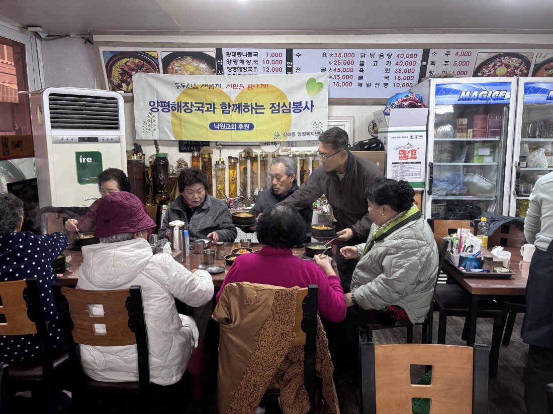 식사에 참여한 한 어르신은 “추워지면서 끼니 해결이 부담스러웠는데, 따뜻한 해장국을 무료로 먹을 수 있어 감사하다. 몸과 마음이 든든해졌다”라며 이담양평해장국과 낙원교회에 고마움을 전했다.