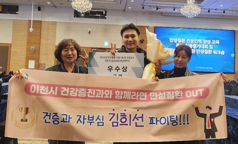[금요저널] 이천시보건소는 소속 직원인 김희선 주무관이 지난 18일 전라남도 여수에서 열린 ‘2025년 만성질환 사업기획 및 건강조사 전문가 실무교육과정 전국 최종 평가대회’구연 부문에서 우수상을 받았다고 밝혔다.