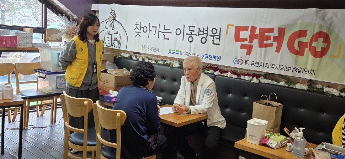 ‘닥터GO’사업은 신체적·경제적·지리적 요인으로 의료기관 방문이 어려운 시민을 위한 무료 이동 건강검진 프로그램으로, 동두천시와 경기도립노인전문동두천병원, 동두천시지역사회보장협의체가 협력해 지속적으로 추진하고 있다.
