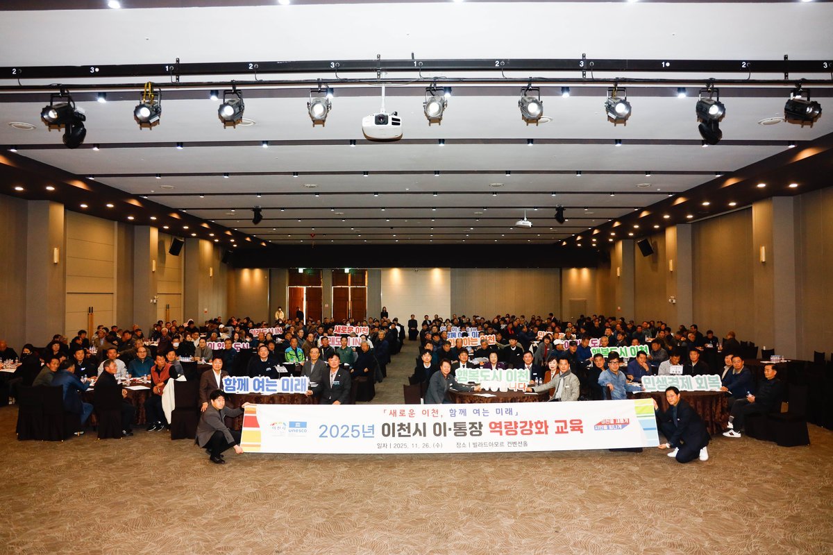 [금요저널] 이천시는 26일 빌라드아모르 컨벤션홀에서 이천시 이·통장 430여 명을 대상으로 ‘2025년 이천시 이·통장 역량강화 교육’을 실시했다고 밝혔다.