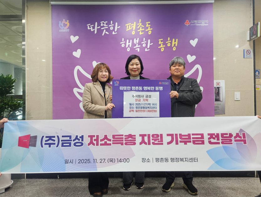 ㈜금성, 안양시 평촌동에 연말연시 이웃돕기 성금 1천만원 쾌척 (안양시 제공)
