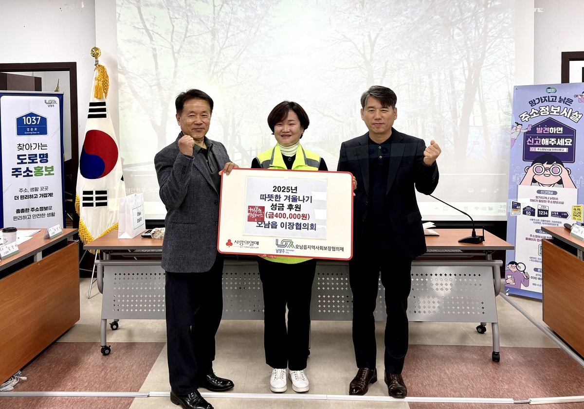 이번 성금은 지난 11월 8일 열린 오남호수공원축제를 통해 마련된 것으로, 수익금 40만 원은 연말을 맞아 취약계층의 따뜻한 겨울나기를 돕는 데 사용된다.