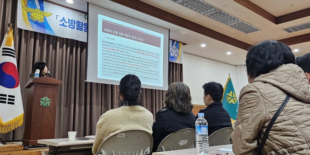 교육은 대전소방본부 법률자문을 맡고 있는 문선혜 변호사가 진행했으며, △소방활동 중 발생할 수 있는 민․형사 사건별 대응 절차 △소방공무원의 법적 권한과 책임 △소송 제기 시 지원 체계 및 보호 장치 등 실제 사례 중심의 실무형 내용으로 구성됐다.